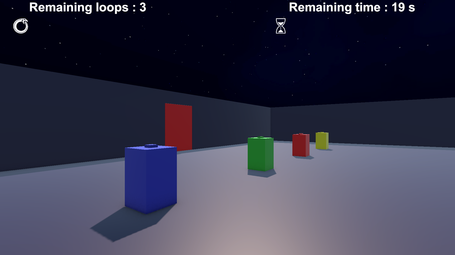 In this 3D puzzle game, you're trapped in a mysterious room. To escape, you must activate the colored buttons in the correct order before the loop ends. You only have four loops to solve the puzzle—so every second counts.